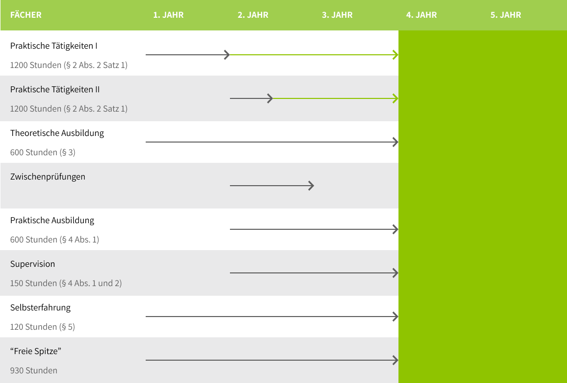 Im Folgenden findet sich eine prototypische Darstellung des Ausbildungsverlaufes über drei- bzw. über fünf Jahre.